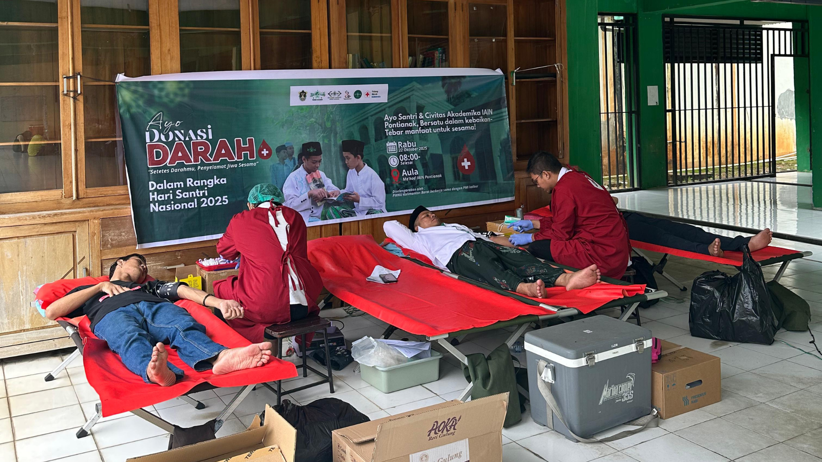 Pontianak – Pengurus Wilayah Nahdlatul Ulama (PWNU) Kalimantan Barat bersama seluruh jajarannya menggelar aksi sosial berupa Donor Darah Massal dalam rangka memperingati Hari Santri Nasional (HSN) 2025. Kegiatan ini dipusatkan di Ma’had Al-Jami’ah Institut Agama Islam Negeri (IAIN) Pontianak, Jalan WR Supratman, pada hari Rabu (22/10/2025).